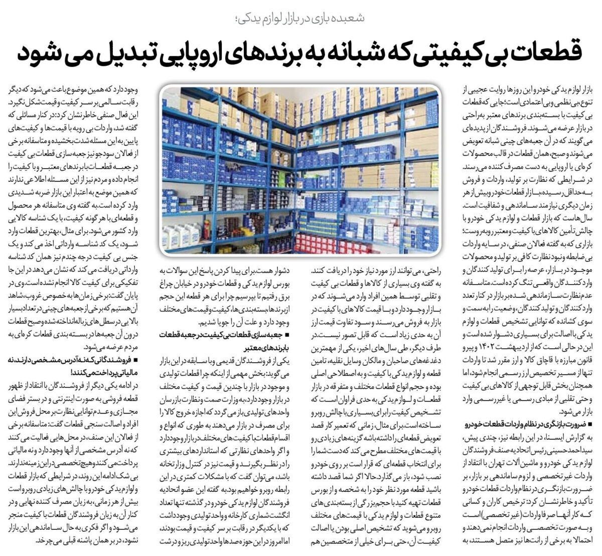 بازار لوازم یدکی خودرو این روزها روایت عجیبی از تنوع، بینظمی و بیاعتمادی است؛ جایی که قطعات بیکیفیت با بستهبندی برندهای معتبر بهراحتی در بازار عرضه میشوند. فروشندگان از پدیدهای میگویند که در آن جعبههای چینی شبانه تعویض میشوند و صبح، همان قطعات در قالب محصولات کرهای یا اروپایی به دست مصرفکننده میرسند. در شرایطی که نظارت بر تولید، واردات و فروش به حداقل رسیده، بازار قطعات خودرو بیش از هر زمان دیگری نیازمند ساماندهی و شفافیت است.سالهاست که بازار قطعات و لوازم یدکی خودرو با چالش تأمین کالاهای با کیفیت و معتبر روبهروست؛ بازاری که به گفته فعالان صنفی، در سایه واردات بیضابطه و نبود نظارت کافی بر تولید و محصولات موجود در بازار، عرصه را برای تولیدکنندگان و واردکنندگان واقعی تنگ کرده است.متاسفانه عدم نظارت سازماندهی شده بر بازار در کنار تعدد واردکنندگان و تولیدکنندگان، وضعیت را به سمت و سوی کشانده که توانایی تشخیص قطعات و لوازم یدکی با اصالت برای بسیاری دشوار شده است و این در حالی است که از اردیبهشت ۱۴۰۲ و پیرو قانون مبارزه با قاچاق کالا و ارز مقرر شد تا واردات تنها از مسیر تخصیص ارز رسمی انجام شود، اما همچنان بخش قابل توجهی از کالاهای بیکیفیت و حتی تقلبی از مبادی رسمی یا غیررسمی وارد بازار میشود.