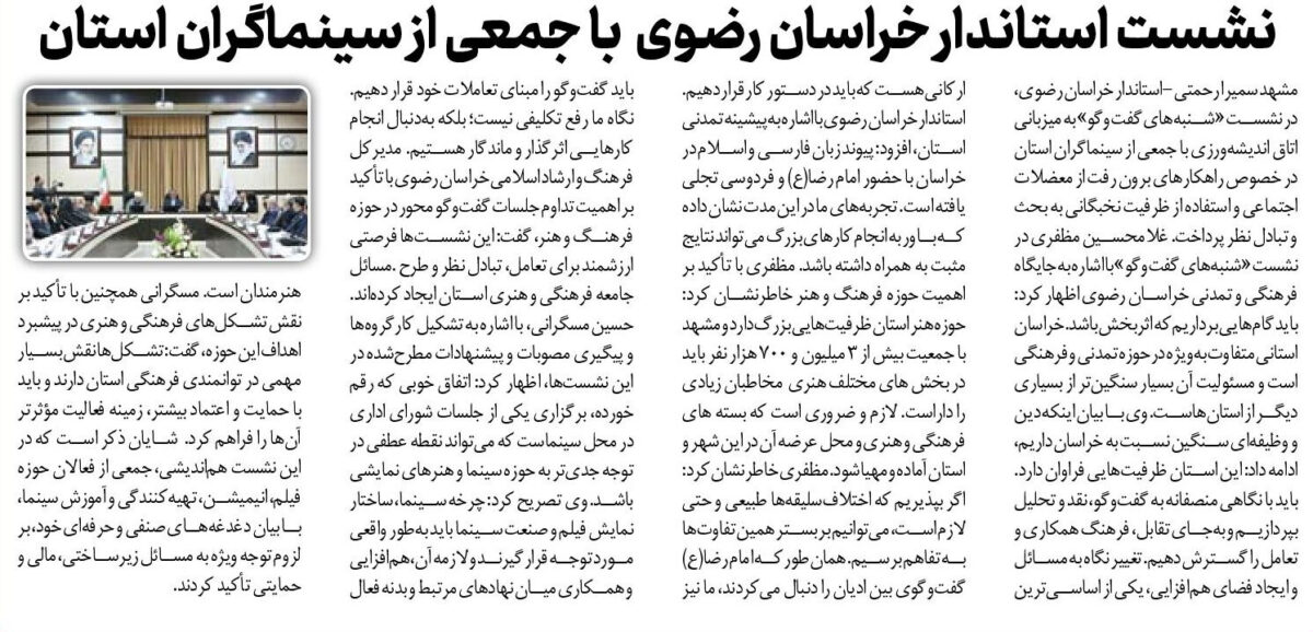 مشهد سمیرا رحمتی -استاندار خراسان رضوی، در نشست «شنبههای گفتوگو» به میزبانی اتاق اندیشهورزی با جمعی از سینماگران استان در خصوص راهکارهای برون رفت از معضلات اجتماعی و استفاده از ظرفیت نخبگانی به بحث و تبادل نظر پرداخت. غلامحسین مظفری در نشست «شنبههای گفتوگو» با اشاره به جایگاه فرهنگی و تمدنی خراسان رضوی اظهار کرد: باید گامهایی برداریم که اثربخش باشد. خراسان استانی متفاوت بهویژه در حوزه تمدنی و فرهنگی است و مسئولیت آن بسیار سنگینتر از بسیاری دیگر از استانهاست. وی با بیان اینکه دین و وظیفهای سنگین نسبت به خراسان داریم، ادامه داد: این استان ظرفیتهایی فراوان دارد. باید با نگاهی منصفانه به گفتوگو، نقد و تحلیل بپردازیم و بهجای تقابل، فرهنگ همکاری و تعامل را گسترش دهیم. تغییر نگاه به مسائل و ایجاد فضای همافزایی، یکی از اساسیترین ارکانی هست که باید در دستور کار قرار دهیم. استاندار خراسان رضوی با اشاره به پیشینه تمدنی استان، افزود: پیوند زبان فارسی و اسلام در خراسان با حضور امام رضا(ع) و فردوسی تجلی یافته است. تجربههای ما در این مدت نشان داده که باور به انجام کارهای بزرگ میتواند نتایج مثبت به همراه داشته باشد. مظفری با تأکید بر اهمیت حوزه فرهنگ و هنر خاطرنشان کرد: حوزه هنر استان ظرفیتهایی بزرگ دارد و مشهد با جمعیت بیش از ۳ میلیون و ۷۰۰ هزار نفر باید در بخش های مختلف هنری مخاطبان زیادی را داراست. لازم و ضروری است که بسته های فرهنگی و هنری و محل عرضه آن در این شهر و استان آماده و مهیا شود. مظفری خاطرنشان کرد: اگر بپذیریم که اختلافسلیقهها طبیعی و حتی لازم است، میتوانیم بر بستر همین تفاوتها به تفاهم برسیم. همانطور که امام رضا(ع) گفتوگوی بین ادیان را دنبال میکردند، ما نیز باید گفتوگو را مبنای تعاملات خود قرار دهیم. نگاه ما رفع تکلیفی نیست؛ بلکه بهدنبال انجام کارهایی اثرگذار و ماندگار هستیم. مدیرکل فرهنگ و ارشاد اسلامی خراسان رضوی با تأکید بر اهمیت تداوم جلسات گفتوگو محور در حوزه فرهنگ و هنر، گفت: این نشستها فرصتی ارزشمند برای تعامل، تبادل نظر و طرح .مسائل جامعه فرهنگی و هنری استان ایجاد کردهاند. حسین مسگرانی، با اشاره به تشکیل کارگروهها و پیگیری مصوبات و پیشنهادات مطرحشده در این نشستها، اظهار کرد: اتفاق خوبی که رقم خورده، برگزاری یکی از جلسات شورای اداری در محل سینماست که میتواند نقطه عطفی در توجه جدیتر به حوزه سینما و هنرهای نمایشی باشد. وی تصریح کرد: چرخه سینما، ساختار نمایش فیلم و صنعت سینما باید بهطور واقعی مورد توجه قرار گیرند و لازمه آن، همافزایی و همکاری میان نهادهای مرتبط و بدنه فعال هنرمندان است. مسگرانی همچنین با تأکید بر نقش تشکلهای فرهنگی و هنری در پیشبرد اهداف این حوزه، گفت: تشکلها نقش بسیار مهمی در توانمندی فرهنگی استان دارند و باید با حمایت و اعتماد بیشتر، زمینه فعالیت مؤثرتر آنها را فراهم کرد. شایان ذکر است که در این نشست هماندیشی، جمعی از فعالان حوزه فیلم، انیمیشن، تهیهکنندگی و آموزش سینما، با بیان دغدغههای صنفی و حرفهای خود، بر لزوم توجه ویژه به مسائل زیرساختی، مالی و حمایتی تأکید کردند.
