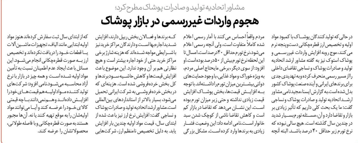 در حالیکه تولیدکنندگان پوشاک با کمبود مواد اولیه و تخصیص ارز قطرهچکانی دستوپنجه نرم میکنند، موج روبه افزایش واردات غیررسمی و پوشاک استوک نیز به گفته مشاور ارشد اتحادیه تولید و صادرات پوشاک و نساجی تقاضای داخلی را از مسیر رسمی منحرف کرده و به تهدیدی جدی برای برندهای ایرانی و آینده صنعت پوشاک کشور بدل شده است.به گزارش ایسنا،مجید نامی مشاور ارشد اتحادیه تولید و صادرات پوشاک و نساجی گفت: ما یک بحث کلی داریم که تأثیر زیادی بر بازار و تقاضا دارد و آن، مسئله تورم بسیار شدید در چندین سال گذشته است. هیچ سالی نبوده که نرخ تورم زیر حداقل ۴۰ درصد باشد. البته آنچه مردم واقعاً احساس میکنند با آمار رسمی اعلام شده کاملاً متفاوت است، ولی آنچه رسمی اعلام میشود، نرخ تورم حداقل ۴۰ درصد است. امسال تا این لحظه نرخ تورم بیش از ۵۰ درصد بوده است.او افزود: از سوی دیگر، برخی مایحتاج اصلی مردم، به ویژه خوراک و مواد غذایی، با وجود حمایتهای دولتی بیشترین میزان تورم را داشتهاند. با توجه به افزایش قیمتها، بخش پوشاک افزایش قیمت زیادی نداشته و حتی زیر میزان تورم بوده است. این نشان میدهد که تقاضا در بازار کم است و کاهش تقاضا ناشی از کوچک شدن سبد خانوار است.نامی ادامه داد: این وضعیت فشار زیادی به برندها وارد کرده است. مشکل بزرگی که برندها و فعالان بخش ریپل دارند، افزایش شدید اجارهبها است و دارندگان مراکز خرید نیز با شرایطی مواجه شدهاند که هزینه شارژ برخی مراکز خرید حتی از خود اجاره بیشتر است و هیچ نظارتی هم بر آن وجود ندارد. این موضوع باعث افزایش قیمتها و کاهش حاشیه سود برندها و کل بخش خردهفروشی شده است. هزینهای که در بخش خردهفروشی به شرکت ایرانی تحمیل میشود، بسیار بالاتر از استانداردهای بینالمللی است.مشاور ارشد اتحادیه تولید و صادرات پوشاک و نساجی گفت: افزایش نرخ ارز نیز باعث شده از ابتدای سال، قیمت مواد اولیه چندین بار افزایش یابد. به دلیل تخصیص نامنظم ارز، شرکتهایی که از ابتدای سال ثبت سفارش کردهاند هنوز مواد اولیه ابتدایی مانند الیاف، تجهیزات ماشینآلات یا قطعات خود را دریافت نکردهاند و تخصیص ارز به صورت قطرهچکانی انجام میشود. این مسائل باعث ایجاد عدم اطمینان نسبت به تأمین مواد اولیه شده است و همه چیز در بازار با نرخ آزاد محاسبه میشود.نامی افزود: شرکتهای تولیدکننده مواد اولیه هم قیمتهای خود را افزایش دادهاند و هم نمیدانند با چه قیمتی کالای خود را عرضه کنند و آیا میتوانند مواد اولیهشان را به موقع تهیه کنند یا نه. آنها مجبور هستند به صورت قطرهچکانی و با فاصله طولانی، محصولاتشان را عرضه کنند.