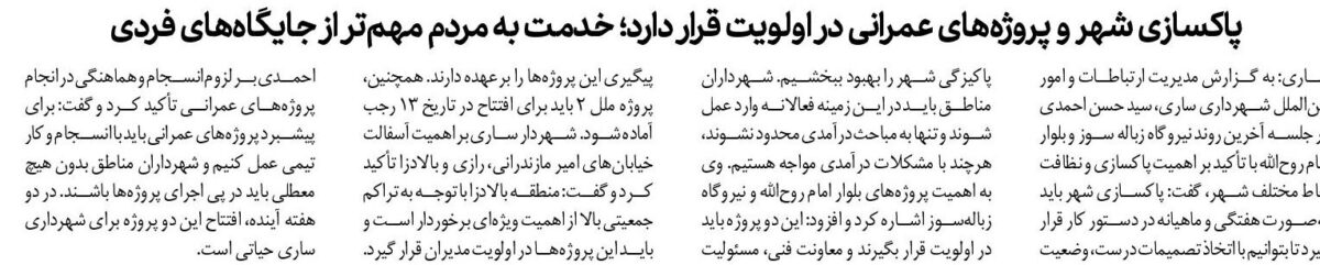 پاکسازی شهر و پروژه‌های عمرانی در اولویت قرار دارد؛ خدمت به مردم مهم‌تر از جایگاه‌های فردی