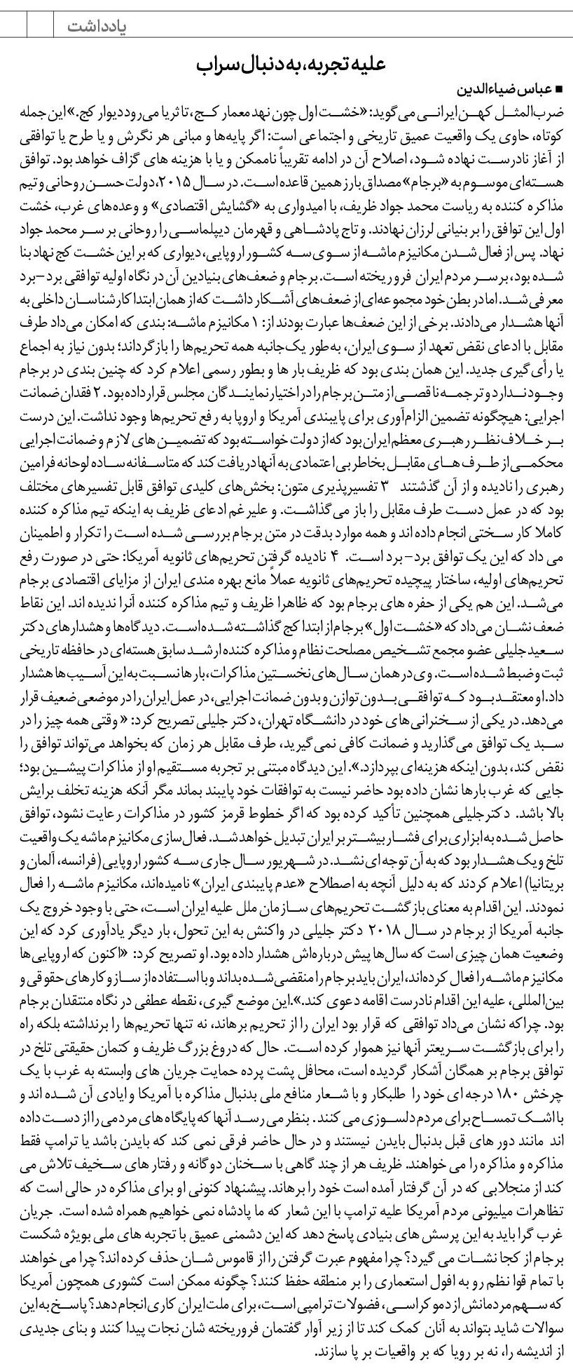ضربالمثل کهن ایرانی میگوید: «خشت اول چون نهد معمار کج، تا ثریا میرود دیوار کج.» این جمله کوتاه، حاوی یک واقعیت عمیق تاریخی و اجتماعی است: اگر پایهها و مبانی هر نگرش و یا طرح یا توافقی از آغاز نادرست نهاده شود، اصلاح آن در ادامه تقریباً ناممکن و یا با هزینه های گزاف خواهد بود. توافق هستهای موسوم به «برجام» مصداق بارز همین قاعده است. در سال ۲۰۱۵، دولت حسن روحانی و تیم مذاکره کننده به ریاست محمد جواد ظریف، با امیدواری به «گشایش اقتصادی» و وعدههای غرب، خشت اول این توافق را بر بنیانی لرزان نهادند. و تاج پادشاهی و قهرمان دیپلماسی را روحانی بر سر محمد جواد نهاد. پس از فعال شدن مکانیزم ماشه از سوی سه کشور اروپایی، دیواری که بر این خشت کج نهاد بنا شده بود، برسر مردم ایران فرو ریخته است. برجام و ضعفهای بنیادین آن در نگاه اولیه توافقی برد–برد معرفی شد. اما در بطن خود مجموعهای از ضعفهای آشکار داشت که از همان ابتدا کارشناسان داخلی به آنها هشدار میدادند. برخی از این ضعفها عبارت بودند از: 1 مکانیزم ماشه: بندی که امکان میداد طرف مقابل با ادعای نقض تعهد از سوی ایران، بهطور یکجانبه همه تحریمها را بازگرداند؛ بدون نیاز به اجماع یا رأیگیری جدید. این همان بندی بود که ظریف بار ها و بطور رسمی اعلام کرد که چنین بندی در برجام وجود ندارد و ترجمه ناقصی از متن برجام را در اختیارنمایندگان مجلس قرارداده بود . 2 فقدان ضمانت اجرایی: هیچگونه تضمین الزامآوری برای پایبندی آمریکا و اروپا به رفع تحریمها وجود نداشت. این درست بر خلاف نظر رهبری معظم ایران بود که از دولت خواسته بود که تضمین های لازم و ضمانت اجرایی محکمی از طرف های مقابل بخاطر بی اعتمادی به آنها دریافت کند که متاسفانه ساده لوحانه فرامین رهبری را نادیده و از آن گذشتند 3 تفسیرپذیری متون: بخشهای کلیدی توافق قابل تفسیرهای مختلف بود که در عمل دست طرف مقابل را باز میگذاشت. و علیرغم ادعای ظریف به اینکه تیم مذاکره کننده کاملا کار سختی انجام داده اند و همه موارد بدقت در متن برجام بررسی شده است را تکرار و اطمینان می داد که این یک توافق برد- برد است. 4 نادیده گرفتن تحریمهای ثانویه آمریکا: حتی در صورت رفع تحریمهای اولیه، ساختار پیچیده تحریمهای ثانویه عملاً مانع بهره مندی ایران از مزایای اقتصادی برجام میشد. این هم یکی از حفره های برجام بود که ظاهرا ظریف و تیم مذاکره کننده آنرا ندیده اند. این نقاط ضعف نشان میداد که «خشت اول» برجام از ابتدا کج گذاشته شده است. دیدگاهها و هشدارهای دکتر سعید جلیلی عضو مجمع تشخیص مصلحت نظام و مذاکره کننده ارشد سابق هستهای در حافظه تاریخی ثبت و ضبط شده است. وی در همان سالهای نخستین مذاکرات، بارها نسبت به این آسیبها هشدار داد. او معتقد بود که توافقی بدون توازن و بدون ضمانت اجرایی، در عمل ایران را در موضعی ضعیف قرار میدهد. در یکی از سخنرانیهای خود در دانشگاه تهران، دکتر جلیلی تصریح کرد: « وقتی همه چیز را در سبد یک توافق میگذارید و ضمانت کافی نمیگیرید، طرف مقابل هر زمان که بخواهد میتواند توافق را نقض کند، بدون اینکه هزینهای بپردازد.». این دیدگاه مبتنی بر تجربه مستقیم او از مذاکرات پیشین بود؛ جایی که غرب بارها نشان داده بود حاضر نیست به توافقات خود پایبند بماند مگر آنکه هزینه تخلف برایش بالا باشد. دکترجلیلی همچنین تأکید کرده بود که اگر خطوط قرمز کشور در مذاکرات رعایت نشود، توافق حاصل شده به ابزاری برای فشار بیشتر بر ایران تبدیل خواهد شد. فعالسازی مکانیزم ماشه یک واقعیت تلخ و یک هشدار بود که به آن توجه ای نشد. در شهریور سال جاری سه کشور اروپایی (فرانسه، آلمان و بریتانیا) اعلام کردند که به دلیل آنچه به اصطلاح «عدم پایبندی ایران» نامیدهاند، مکانیزم ماشه را فعال نمودند. این اقدام به معنای بازگشت تحریمهای سازمان ملل علیه ایران است، حتی با وجود خروج یک جانبه آمریکا از برجام در سال ۲۰۱۸ دکتر جلیلی در واکنش به این تحول، بار دیگر یادآوری کرد که این وضعیت همان چ
