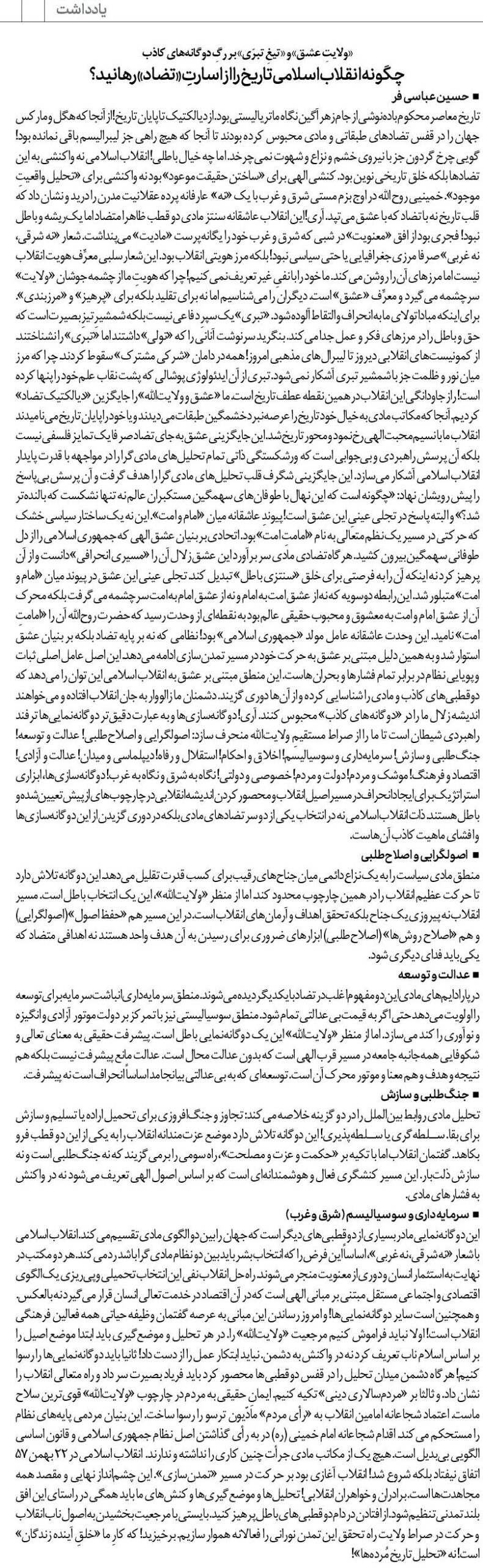 «ولایتِ عشق» و «تیغِ تبرّی» بر رگِ دوگانههای کاذب