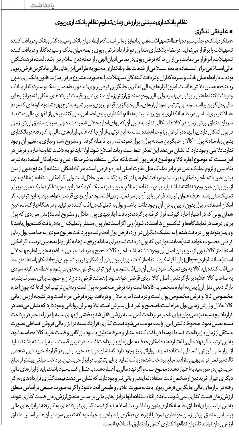 نظام بانکداری مبتنی بر ارزش زمان تداوم نظام بانکداری ربوی