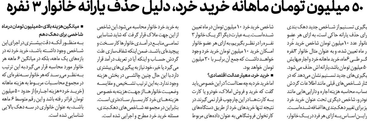 50 میلیون تومان ماهانه خرید خرد، دلیل حذف یارانه خانوار 3 نفره