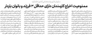 سازمان اداری و استخدامی کشور، «عدم جواز تعدیل» یا «اعلام عدم نیاز نیروهای دارای حداقل سه فرزند یا بانوان باردار یا دارای فرزند شیرخوار» از سوی دستگاههای اجرایی را ابلاغ کرد.به گزارش «عصر ایرانیان»، ذبیحالله…