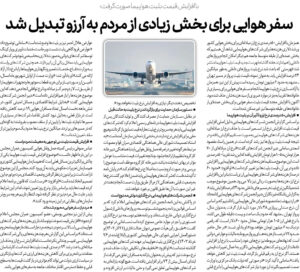 همزمان با افزایش ۵۰ درصدی نرخ ارز مبادلهای برای بخش هوایی کشور و رشد دلاری هزینهها برای شرکتهای هواپیمایی شاهد آن هستیم که بخش عمدهای از طبقه متوسط جامعه هم دیگر امکان انجام پروازهای داخلی…