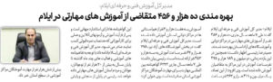 ایلام- مدیر کل آموزش فنی و حرفه ای ایلام گفت: طی ۷ ماهه سال جاری، ده هزار و ۴۵۶ نفر از آموزش های مهارتی در مراکز دولتی و آموزشگاه های آزاد استان بهره مند شدند.…