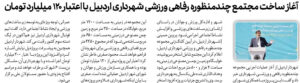 شهردار اردبیل از آغاز عملیات اجرایی مجموعه چندمنظوره رفاهی و ورزشی شهرداری خبر داد و گفت این پروژه با همکاری شورای شهر و ادارهکل ورزش و جوانان در راستای ارتقای زیرساختهای ورزشی و افزایش نشاط…