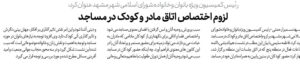 مشهد سمیرا رحمتی -رئیس کمیسیون ویژه بانوان وخانواده شورای اسلامی شهر مشهد بر لزوم اختصاص اتاق مادر و کودک در مساجد تاکید کرد. فاطمه سلیمی با بیان این مطلب در نشست هم اندیشی با ائمه…