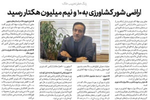 معاون وزیر جهاد کشاورزی با بیان اینکه بیش از ۱۰ و نیم میلیون هکتار از اراضی کشاورزی کشور در ردههای مختلف شوری قرار دارد، افزود: این در حالی است که در دهه ۷۰، ۶ میلیون…