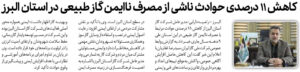 البرز –راضیه دارابی : مدیرعامل شرکت گاز استان البرز از کاهش ۱۱ درصدی حوادث مرتبط با مصرف ناایمن گاز طبیعی در این استان طی ۹ ماهه سال جاری خبر داد. به گزارش روابط عمومی شرکت…