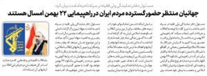 مسئول دفتر نمایندگی ولی فقیه در سپاه ناحیه امامت تبریز گفت: با توجه به اتفاقات و جریانات اخیر، ایجاب میکند که راهپیمایی ۲۲ بهمن ماه امسال، با تمام توان و قدرت حضور پیدا کنیم. به…