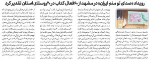 مشهد سمیرا رحمتی-رویداد ملیفرهنگی «صدای تو منم، ایران» با محوریت تجلیل از فعالان حوزه کتاب در روستاهای خراسان رضوی در مشهد برگزار شد. رویداد ملی فرهنگی «صدای تو منم ایران» با محوریت تجلیل از فعالان…