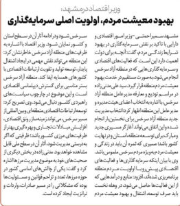 مشهد سمیرا حمتی -وزیر امور اقتصادی و دارایی با تاکید بر نقش سرمایهگذاری در بهبود شرایط زندگی مردم، گفت: آنچه برای دولت اهمیت دارد این است که فعالیتهای اقتصادی و سرمایهگذاریهایی که در منطقه آزاد…
