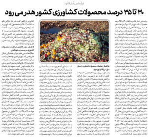 براساس آمار فائو سالانه ۳۰ تا ۳۵ درصد محصولات کشاورزی کشور از مزرعه تا سفره هدر می رود که کاهش این حجم ضایعات در واردات و تامین غذای کشور نقش بسزایی دارد.بنابر آمار میزان تولید…