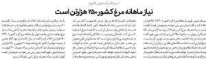 دبیرفدراسیون طیور نیاز ماهانه مرغ گرم کشور را ۲۴۰ تا ۲۵۰ هزارتن اعلام کرد و گفت: پیش بینی می شود به رغم نوسان قیمت گوشت قرمز، سرانه مصرف مرغ از این رقم بالاتر نرود..به گزارش…