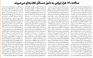 مدیر دفتر بهبود تغذیه جامعه وزارت بهداشت با اشاره به نقش پررنگ تغذیه در مرگومیر کشور و با بیان اینکه سالانه حدود ۱۲۰ هزار ایرانی به دلیل مسائل تغذیهای جان خود را از دست میدهند،…