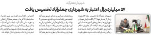 شهردار جعفرآباد از تخصیص مبلغ ۵۷ میلیارد ریال از محل مواد ۴۲ و ۵۸ سازمان همیاری شهرداریها و دهیاریهای کشور به حساب این شهرداری خبر داد. ایلام- آذر یعقوبیان : ظاهر باقریان پور اظهار داشت:…