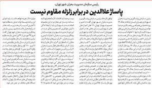 رئیس سازمان پیشگیری و مدیریت بحران شهرداری تهران با بیان اینکه در جنگ ۱۲ روزه تحمیلی همراهی و همکاری مردم با عوامل و نیروهای امدادی و درمانی بینظیر بود، تاکید کرد: تنها ۱۰ خانواده آسیبدیده…