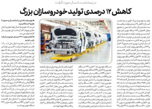 تولید سه خودروساز بزرگ کشور در نیمه نخست امسال از کاهش ۱۲ درصدی تولید در مقایسه با مدت مشابه پارسال حکایت دارد یعنی در مجموع معادل ۵۶ هزار و ۱۲۲ دستگاه خودرو کمتر تولید کردند.بررسی…