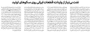 صنعت نفت ایران که تا همین سالهای قبل برای تولید به تجهیزات وارداتی وابسته بود اما امروزه به کمک شرکتهای دانشبنیان داخلی موفق شده است تا با داخلیسازی قطعات روی پای خود بایستد.وقتی موج تحریمهای…