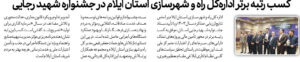 ادارهکل راه و شهرسازی استان ایلام بر اساس نتایج ارزیابی عملکرد سال ۱۴۰۳ و با تأیید ستاد جشنواره شهید رجایی استان، موفق به کسب رتبه برتر در محور تأمین مالی پروژههای تملک داراییهای سرمایهای از…