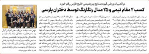 تیم شنای دختران پتروشیمی پارس در این المپیاد ورزشی توانستند در بخش انفرادی، ۷ مدال طلا، ۶ نقره و ۱۲ برنز و در بخش تیمی هم یک مقام اولی و یک مقام سومی را کسب…