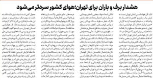 اداره کل هواشناسی استان تهران نسبت به بارش برف و باران و کاهش دما هشدار داد و احتیاط در سفرها را توصیه کرد.به گزارش «عصر ایرانیان»، اداره کل هواشناسی استان تهران با صدور هشدار سطح…