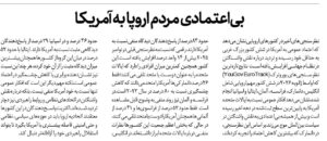 نظرسنجیهای اخیر در کشورهای اروپایی نشان میدهد که اعتماد عمومی به آمریکا در شش کشور بزرگ غربی به حداقل خود رسیده و تردید درباره نقش واشنگتن در نظام جهانی افزایش یافته است نتایج تازهترین نظرسنجیهای یوروترک…