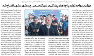 مشهد سمیرا رحمتی -رئیس هیأتمدیره و مدیرعامل شرکت شهرکهای صنعتی خراسان رضوی از افتتاح واحد تولید البسه پزشکی در شهرک صنعتی چرمشهر مشهد به دستور ویدئوکنفرانسی رئیسجمهور همزمان با دهه مبارک فجر خبر داد. جعفر…