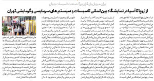 شرکتهایی از چهار قاره جهان از ۱۲ تا ۱۵ مهرماه در محل دائمی نمایشگاه های بینالمللی تهران گردهم میآیند تا در بزرگترین رویداد تخصصی غرب آسیا، آخرین دستاوردهای صنعت تاسیسات را ارائه و مسیر همکاریهای…