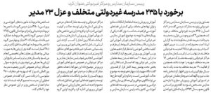 معاون وزیر و رییس سازمان مدارس و مراکز غیردولتی و توسعه مشارکت مردمی گفت: در ۹ ماه امسال با ۲۳۵ مدرسه غیردولتی متخلف برخورد شد، همچنین ۲۳ مدیر و موسس عزل و سه مدرسه به…
