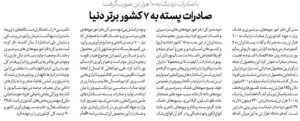 مدیرکل دفتر امور میوههای سردسیری و خشک وزارت جهاد کشاورزی از صادرات نزدیک به ۱۰۰ هزار تن پسته خبر داد و گفت: پسته ایران به ۷ کشور صادر می شود.به گزارش مهر، داریوش سالم پور…