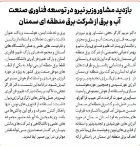 دکتر مریم کارگر نجفی، مشاور وزیر نیرو در توسعه فناوری صنعت آب و برق و مجری راه اندازی پارک علم و فناوری وزارت نیرو بهمراه هیاتی تخصصی، از شرکت برق منطقه ای سمنان بازدید کرد.…