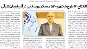 مدیرکل بنیاد مسکن آذربایجانشرقی از افتتاح ۱۶۱ طرح هادی و ۵۲۱۰ مسکن روستایی در دهه فجر خبر داد. حجتاله سروری، مدیرکل بنیاد مسکن انقلاب اسلامی آذربایجانشرقی در گفتوگو با خبرنگاران با گرامیداشت ایامالله دهه فجر،…