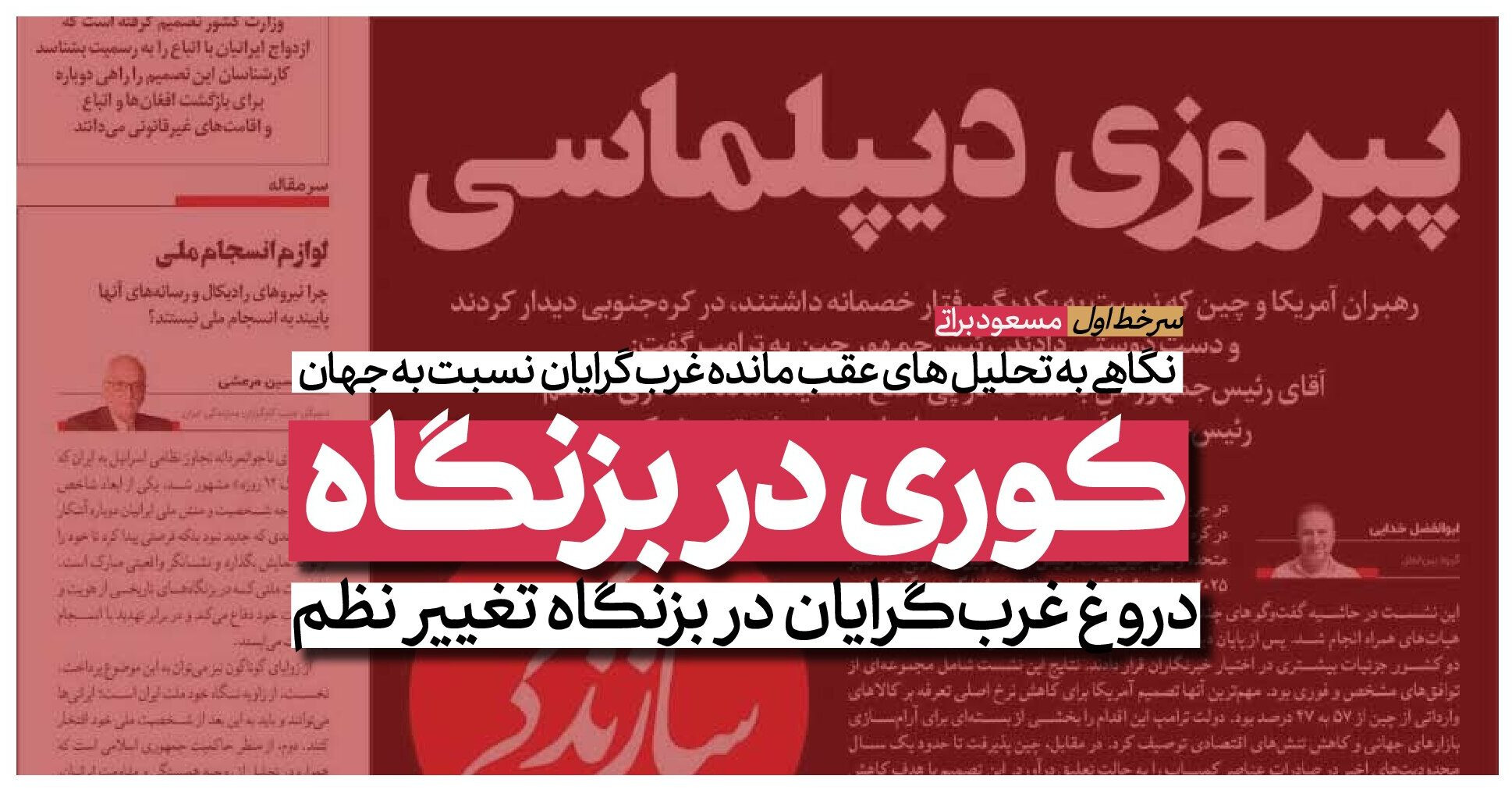 تیتر روزنامه سازندگی درباره نتایج جلسه ترامپ و شی قابل توجه بود؛ «پیروزی دیپلماسی». چرا این تیتر جالب است؟ دلیلش این است که غرب‌گرایان در ایران از عینکی به تحولات بین‌الملل نگاه ...